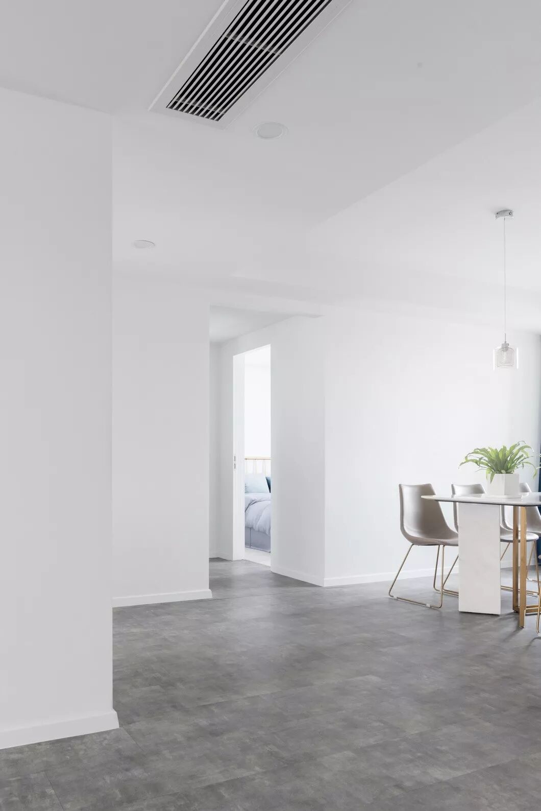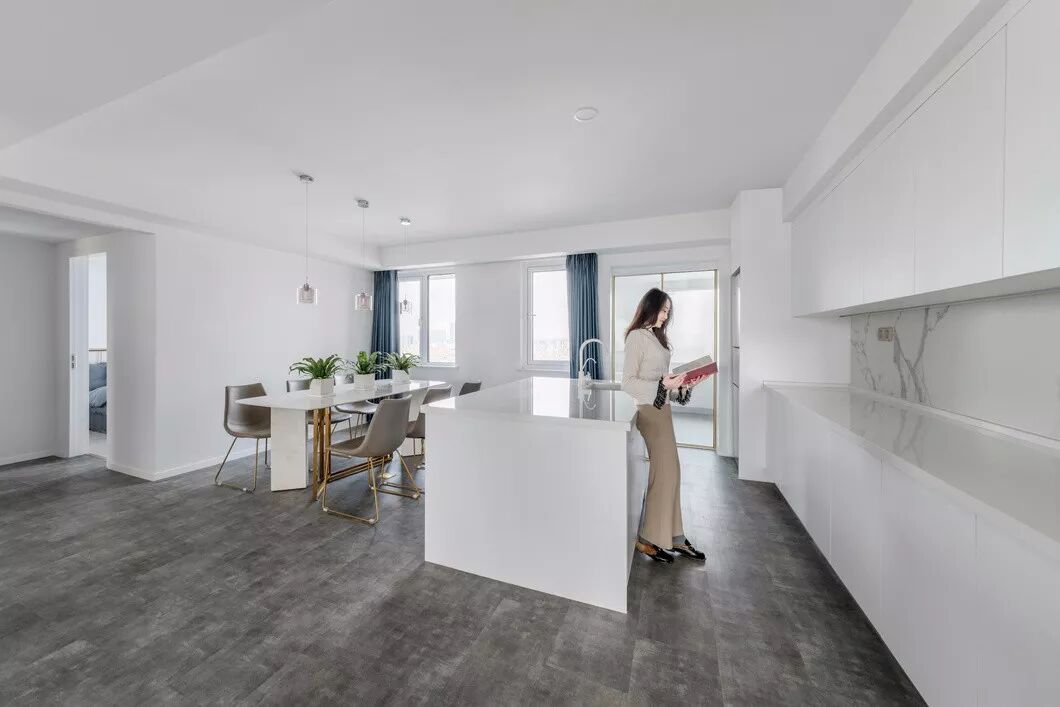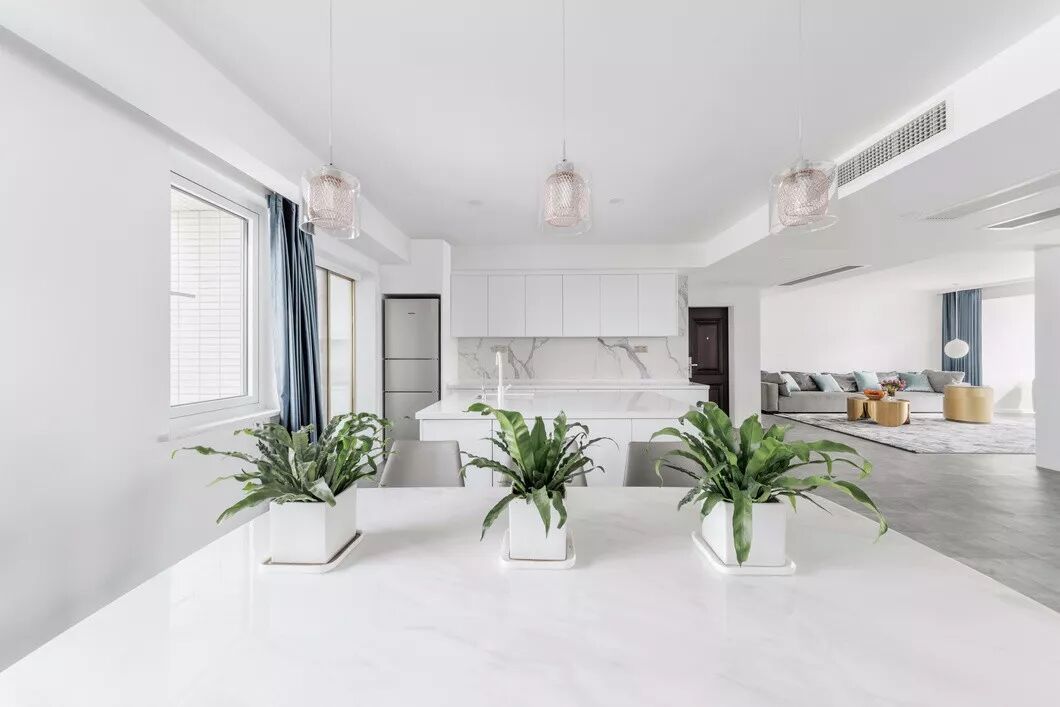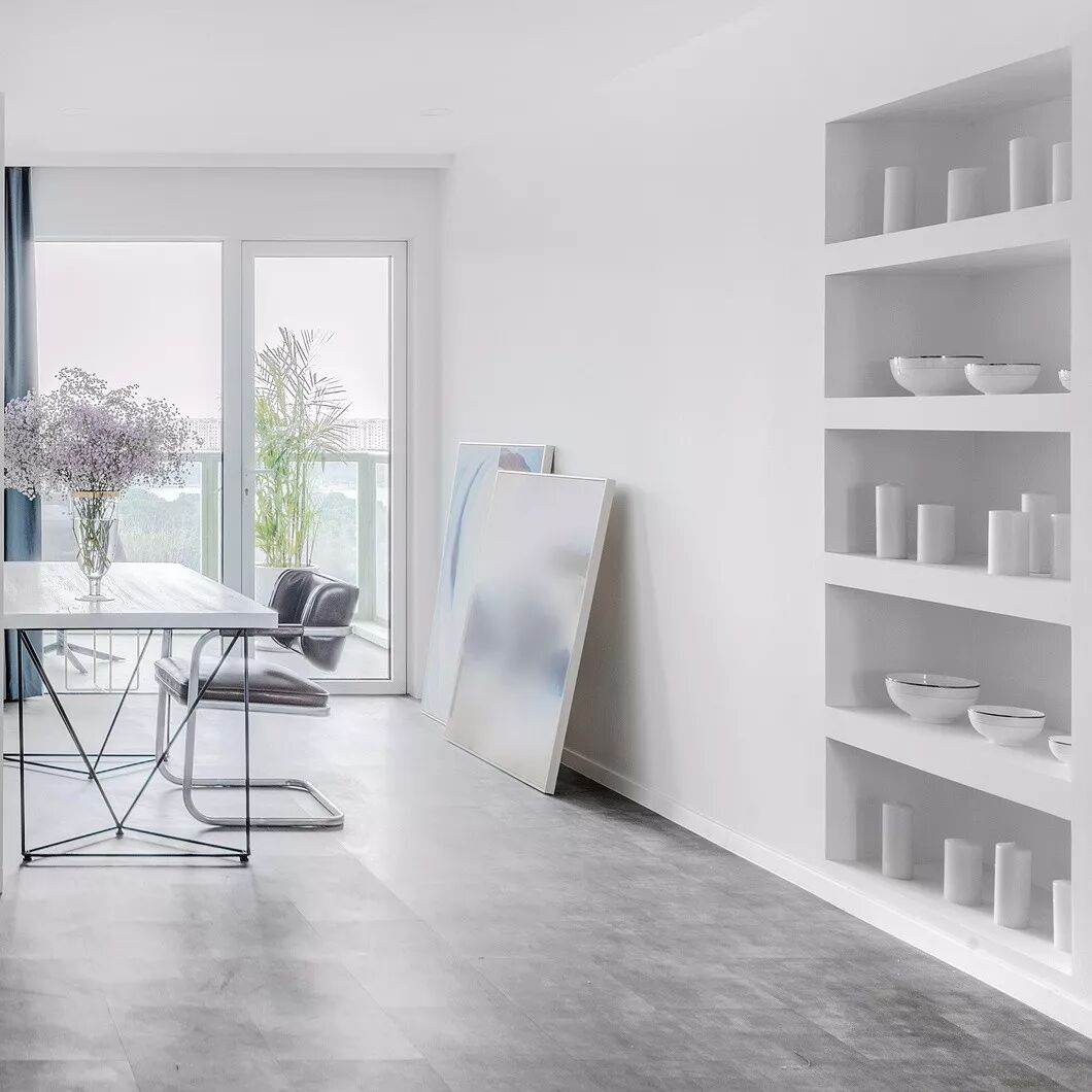 本案面积为190㎡,大面积的留白让整个空间看起来纯净又宽敞,白色包含了光谱中所有的有色光,它能够容纳空间中多元的艺术元素及色彩,并极大地提升空间的质感,用白色作为底色,再其上层点缀视觉感较强的颜色,让整个空间即素雅又灵动。灰白是一对经典的色彩组合,简洁明了,端庄大方,如同极夜与极昼,在对接的一瞬间释放出强大的视觉张力,在越来越求多变的当下。