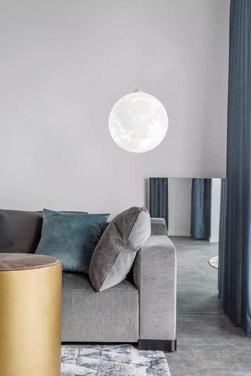 个性的吊灯与金属的茶几以及布艺的沙发搭配,提升了整个空间的质感与设计美感。