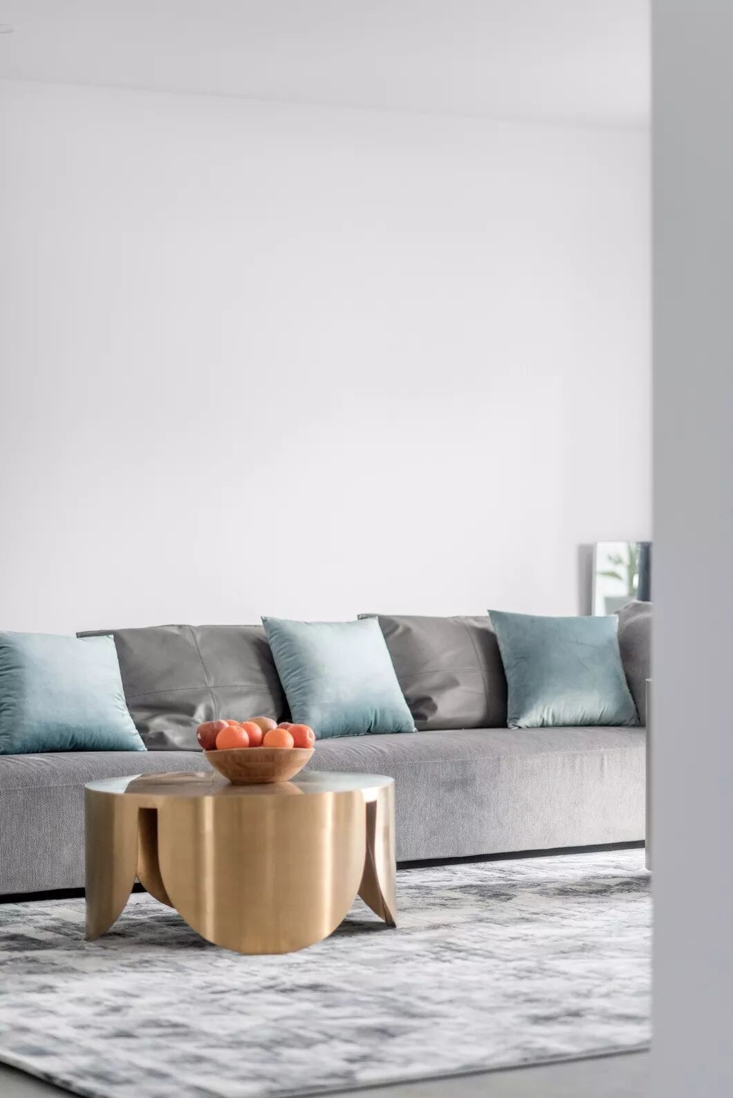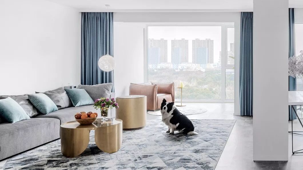 这套软装改造案例却呈现出一以贯之的简约精神,以沉静的灰白为主题引导,在第一时间抓住吸引的焦点,然后用蓝色、橙色以及金色作为点缀,带来跳跃的视觉感受,但是这种跳跃又完全被白色包容,内敛与热情和谐共存。