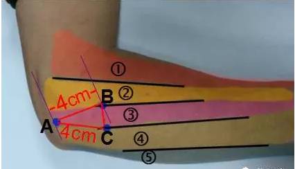 定位要准确:摸准肱骨外上髁顶点(大多数情况下也是压痛点),第一个点与第二个点之间的距离为4cm,最主要的是在嘱患者做伸指伸腕动作时,摸准肌间隙。
