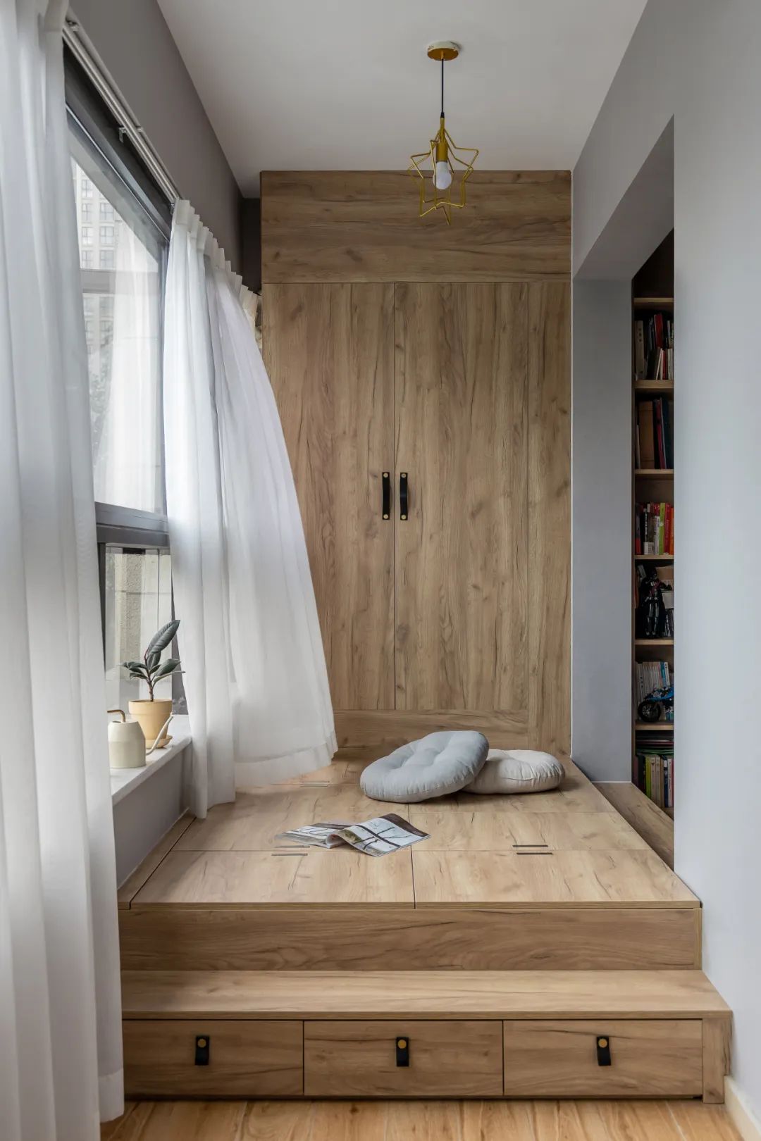家里多一个阳台的房子,也可以把这个阳台抬高定制成榻榻米,这样周末在家的时候,还可以躺在阳台看书、刷手机,累了再躺下休息睡个午觉,日子过得好不惬意。