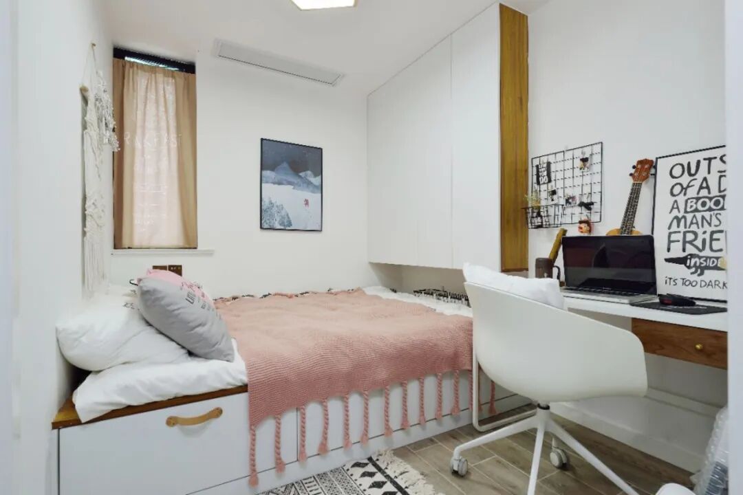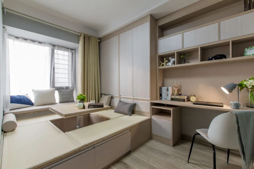 榻榻米床对很多户型中小卧室的设计选择,通过定制榻榻米床的设计,可以让小空间的空间利用更加透彻,在结合书桌或收纳柜的组合设计,可以让小空间显得更加合理实用。