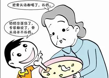 很多人认为,喝骨头汤能补钙,但事实并非如此。用1kg骨头煮汤两小时,汤中的钙含量仅为20mg左右,按成人每日需要800mg钙计算,需要喝300-400碗骨头汤才能满足人体的钙需求。另一方面,骨头汤含有大量饱和脂肪酸,过多饮用对老年人的健康不利。其实,补钙效果最好的食物是牛奶,平均100ml牛奶含钙100mg,此外,酸奶、豆制品、海鲜等食物含钙量都比较高。