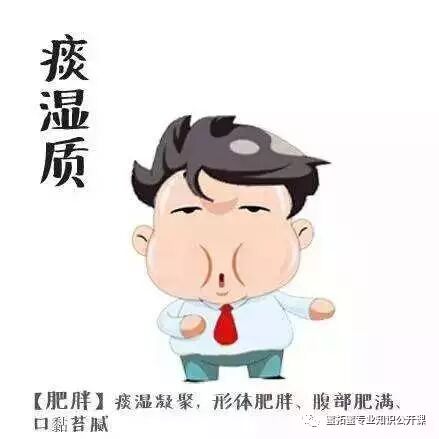 痰湿体质的人,体形肥胖,腹部肥满而松软。容易出汗。经常感觉导肢体酸困沉重、不轻松。经常感觉脸上一层油,嘴里常有黏黏的或甜腻的感觉,嗓子老有痰,舌苔较厚,性格比较温和,舌苔厚腻。患病倾向,易患消渴、中风、胸痹等。
