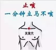 【方法】尽可能地向内下方向按压,可以刺激或者激发迷走神经,坚持3~5分钟,有立刻止咳的效果。你也可以在睡前贴一个伤湿止痛膏在天突穴上,也有同样的效果。