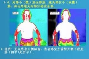 第五是表面不热(或微热),而皮肤下深部组织,甚至胸腹腔脏器感觉很热;
