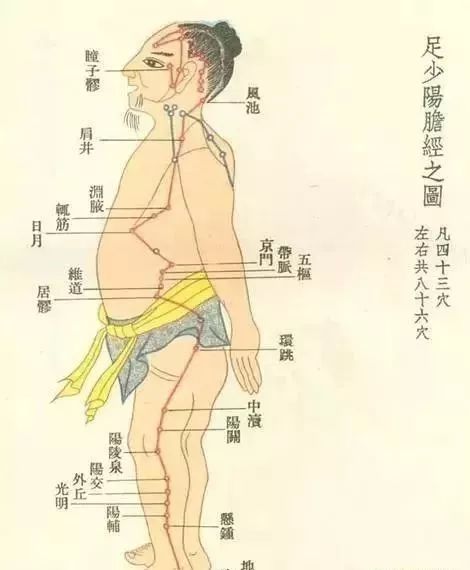 胆经又叫足少阳胆经,共44穴,左右合88穴。简单地说就是你站起来,手指尖顺着侧面裤缝到膝盖那一条线,其实主要就是敲环跳、风市、中渎、膝阳关四个穴位。