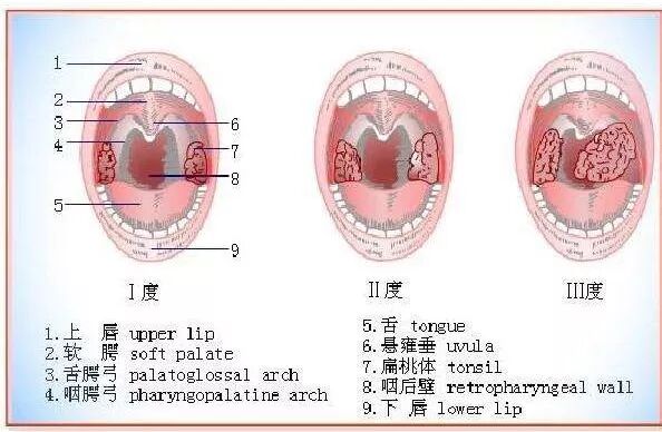 Ⅲ度:扁桃体达到咽后壁中线,或超过咽后壁中线。