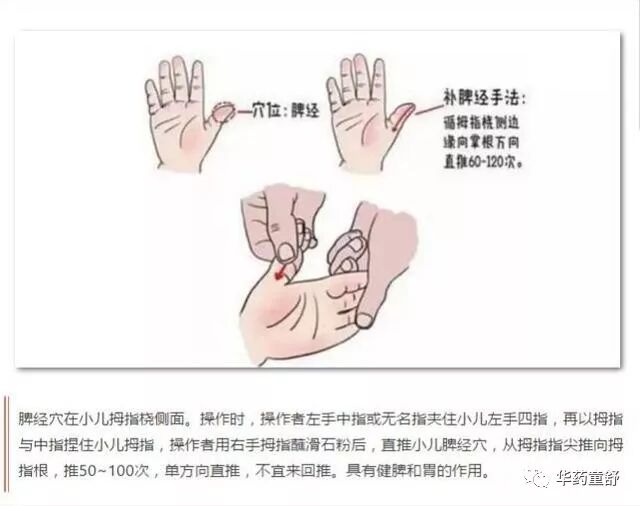 平时宝妈们可给孩子做一些促进脾胃运化的按摩手法,如按摩足三里、按摩肚脐、捏脊等。