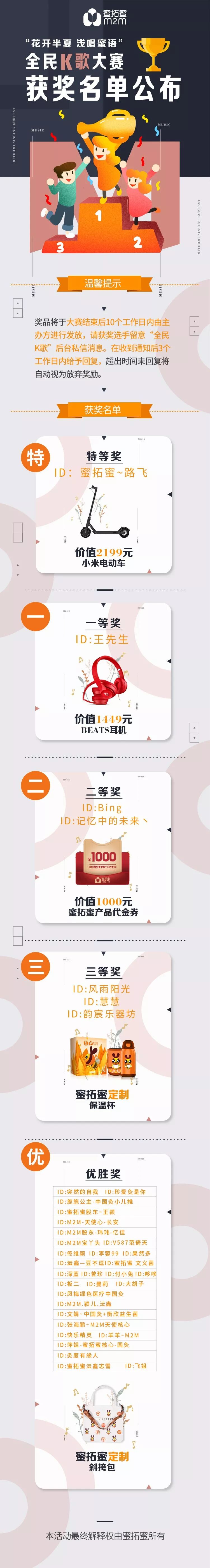 “花开半夏,浅唱蜜语”全民K歌大赛获奖信息公布啦!