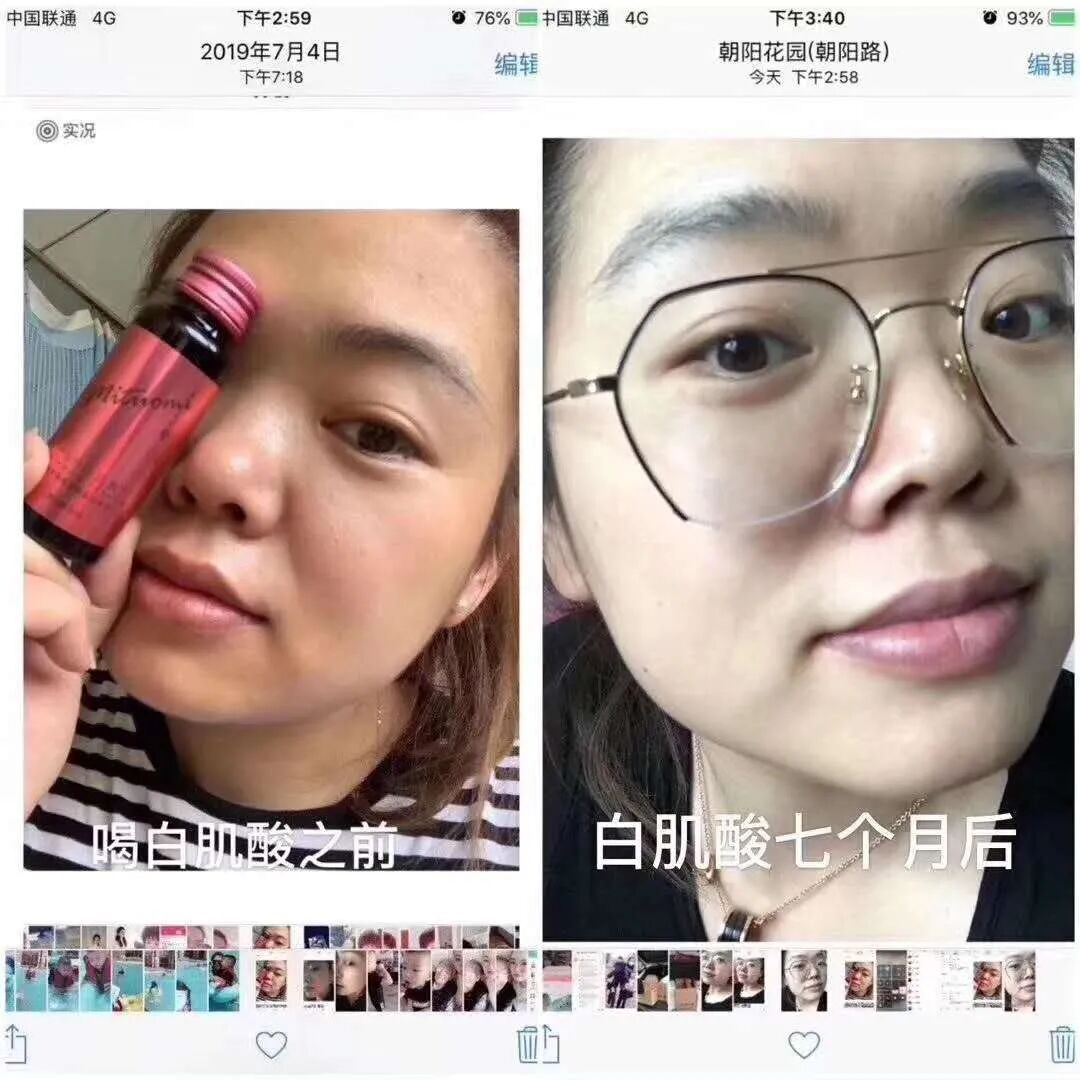 丽丽是特别健康得小麦色,抱着补气血得心态,从白肌酸上市一直喝到现在。每天两瓶,惊人得效果却出来了,变白了,这是意料之中得事,又是意料之外得事