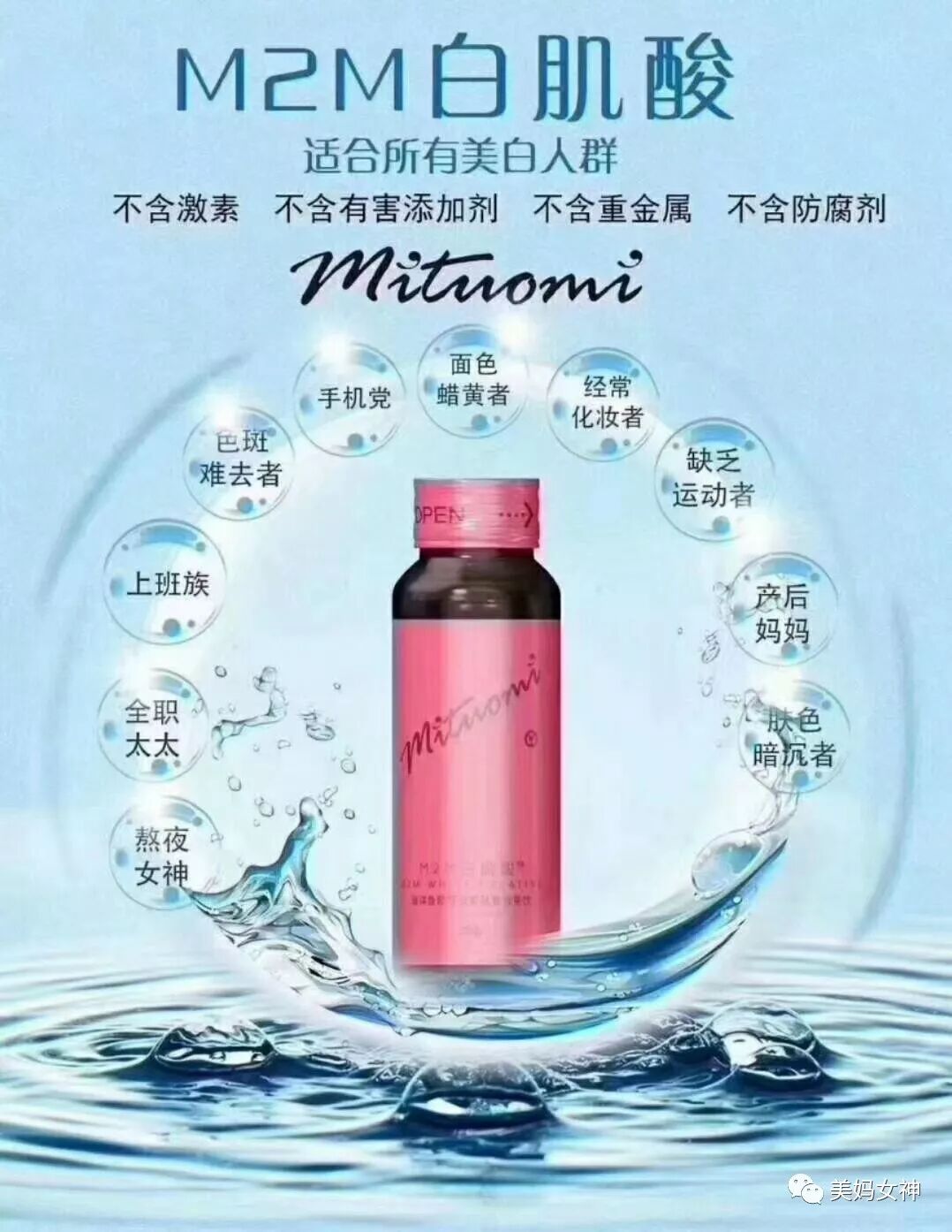 俗话说:一白遮百丑、爱美之心人皆有之。好皮肤是女人最大的财富,一个护肤产品的好坏不是看价钱,不是看包装,不是看那个明星代言。为的是看这个产品能为您带来什么?为了美白还在打美白针,各种痛苦不堪,停止打针,肤色还会反弹。新品蜜拓蜜白肌酸作为中国的美白饮即将造福国人,不打针不吃药,喝喝更健康,让你在这个夏天白成一道闪电。蜜拓蜜相关负责人表示:“神秘新品M2M白肌酸,之所以选择在520接受预定,因为520是一个比较特殊的节日,是一个表达爱意的日子。蜜拓蜜特意选择在这天,是为了在这个特别的日子里,向大众们传递祝福、传递爱。而且这款产品使用方便,消耗快,一天一瓶就能实现想要的美白效果。