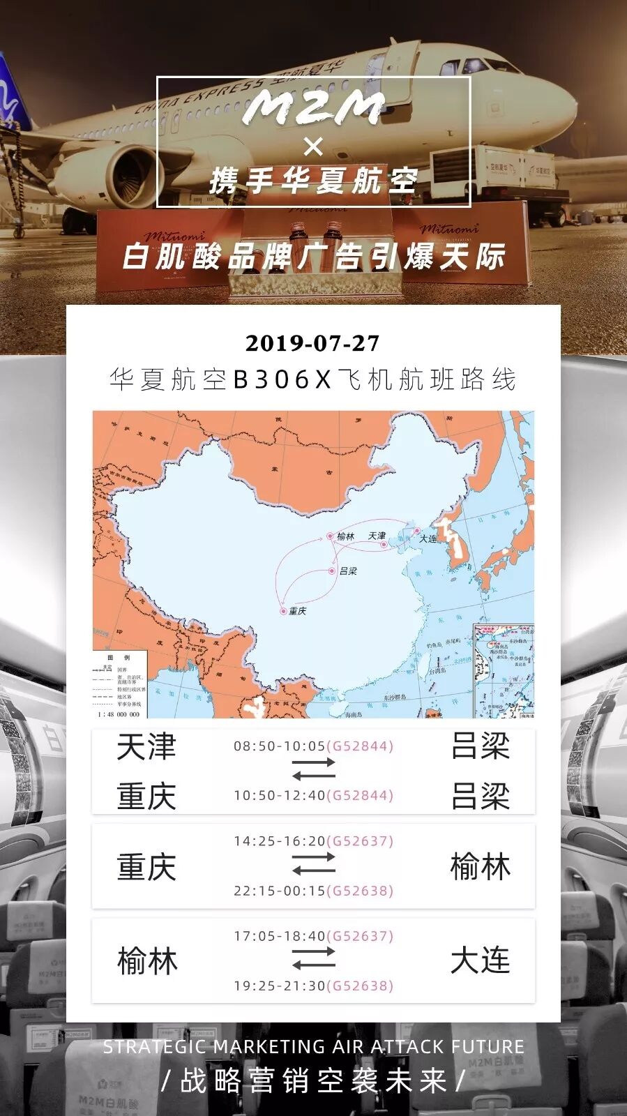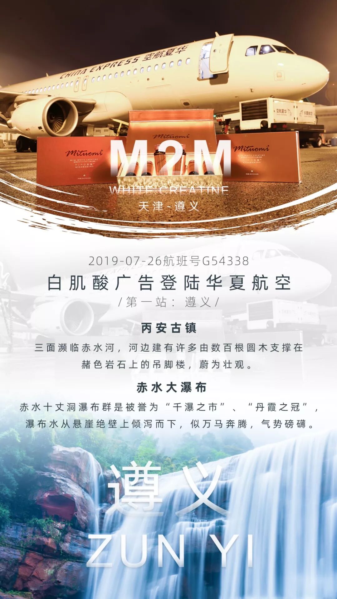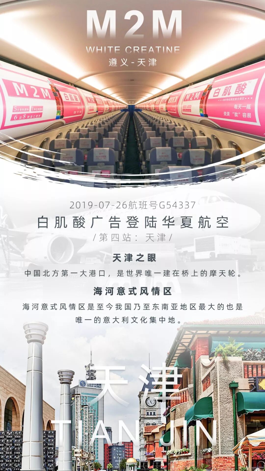 M2M白肌酸品牌广告航班飞跃华夏大地