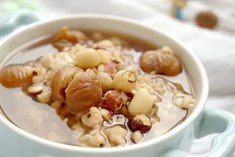 回来先把莲子、芡实、薏苡仁用清水浸泡 30 分钟,再将桂圆肉一同放入锅内,大火烧开后换成小火煮至烂熟就可以了,最后根据自己的喜好加上适量的蜂蜜调味就可以吃了。