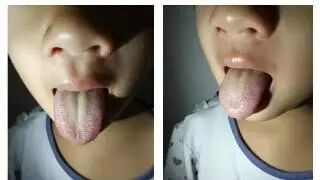 有些积食的孩子舌苔会变厚,甚至形成积粉苔。苔的厚薄可以看出积滞程度。如果能透过舌苔看到舌黏膜就不算厚。积食有热者会表现为黄厚苔很厉害,比如地图舌。
