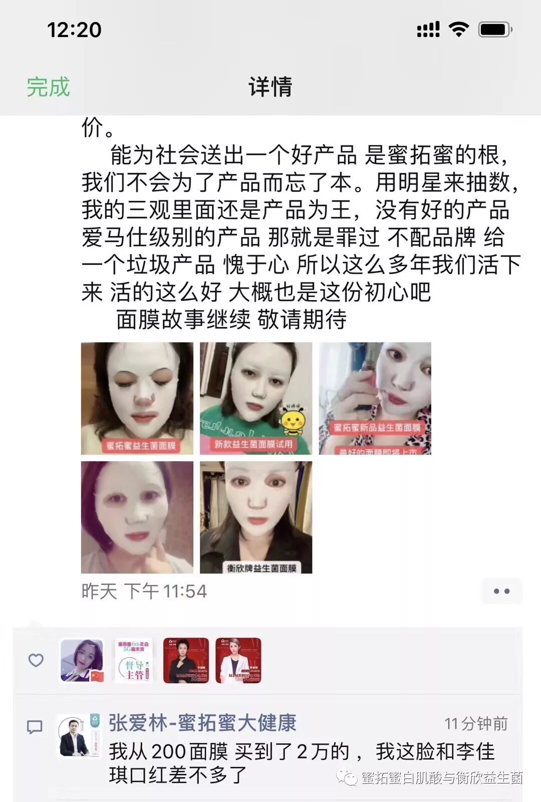 给大家看看咱们老板的朋友圈,从老板的话语中,你就能看出来,这个益生菌面膜,我们是极其用心而且是专业的。