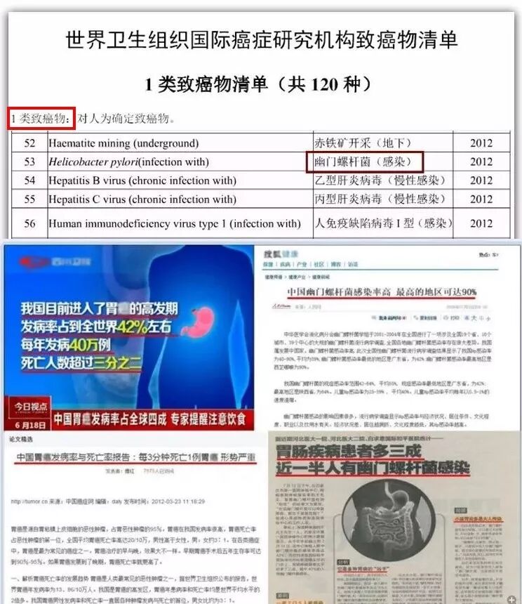 WTO癌症研究机构已将幽门螺杆菌(感染)
