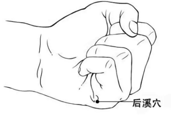 如果你经常坐着,可以把双手后溪穴的这个部位放在桌子沿上,用腕关节带动双手,轻松地来回滚动,即可达到刺激效果。