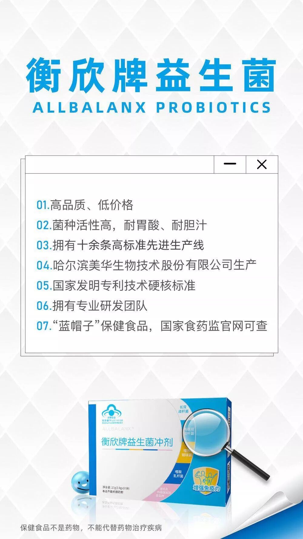 衡欣牌益生菌系列产品,与你相守一生,一起为健康生活而努力着,用最正确的方式补充益生菌,一起拥有更健康的身体吧!
