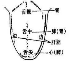将舌划分为舌尖,舌中和舌根三部分,并将这三个部分分别和人体的三焦相对应,即舌尖和上焦对应,舌中和中焦对应,舌根和下焦对应,不同部位出现异常舌苔,也就反映了疾病所在的不同部位。