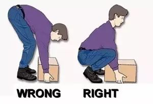 千万不要直接弯腰搬重物,正确的姿势是:先屈膝、屈髋,再用双手持物,伸膝、伸髋,慢慢站立。