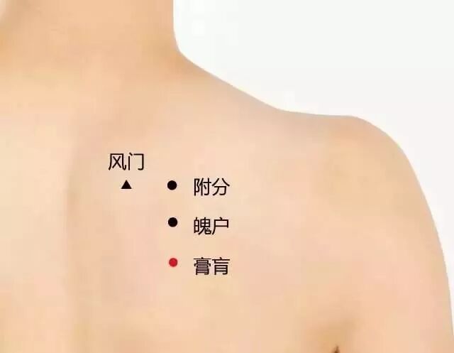 取穴:膏盲穴位于人体背部,当第四胸椎棘突下,左右四指宽处。
