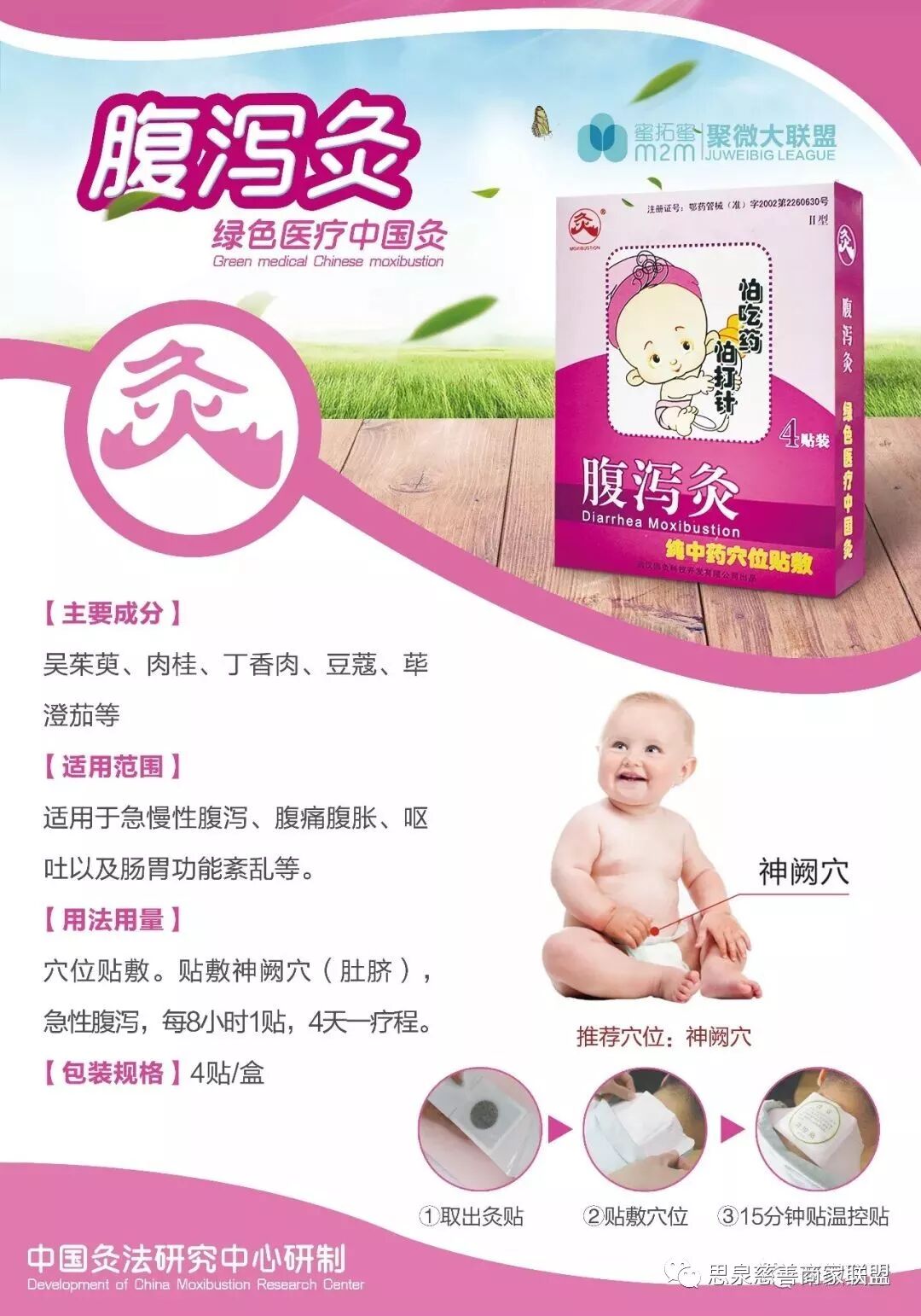 【用法用量】贴于神阙穴(位于肚脐正中间),急性腹泻,每8小时1贴,四天1疗程。