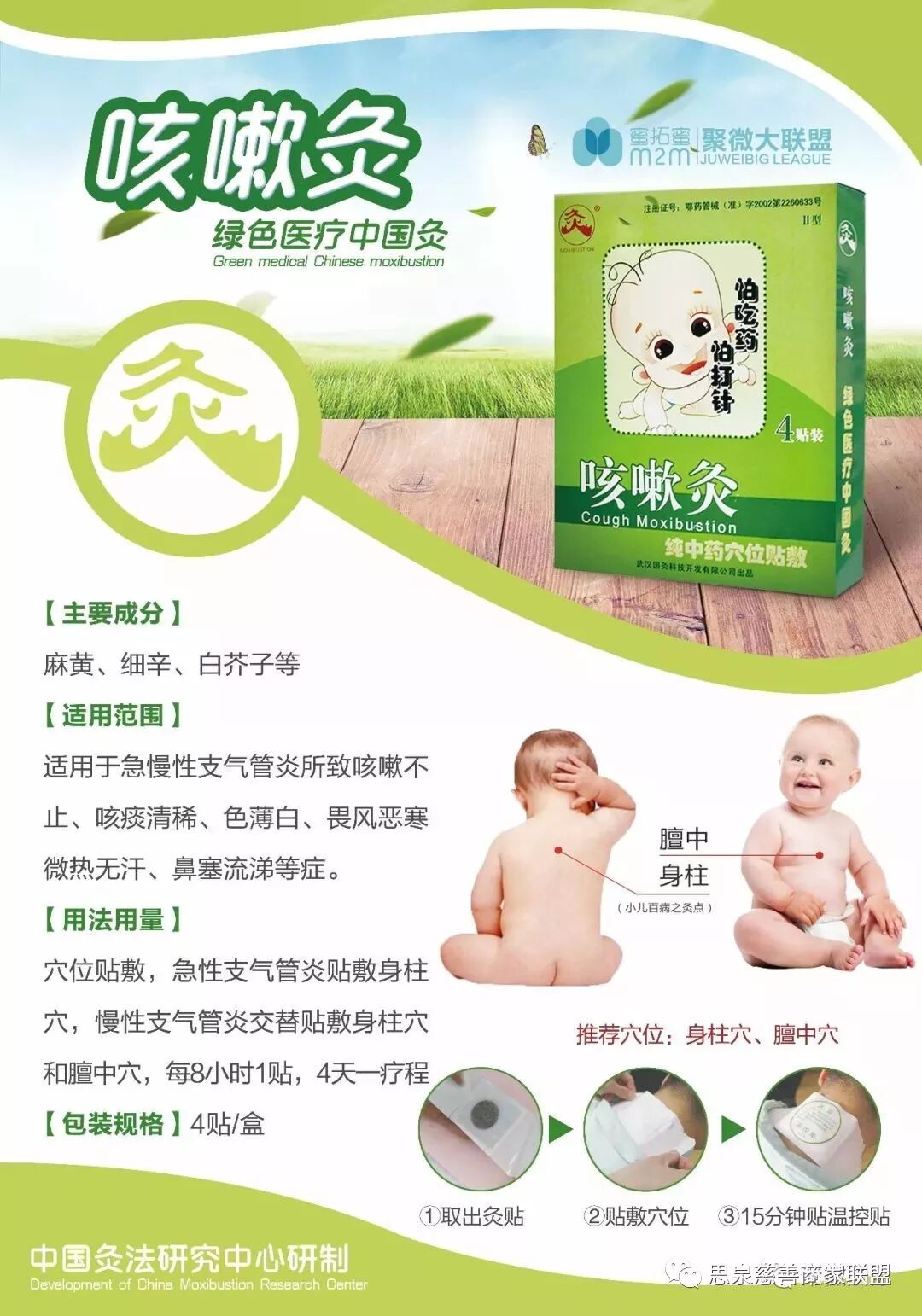 【用法用量】 穴位贴敷,贴大椎穴。伴咳嗽较重者贴身柱穴,每8小时1贴。