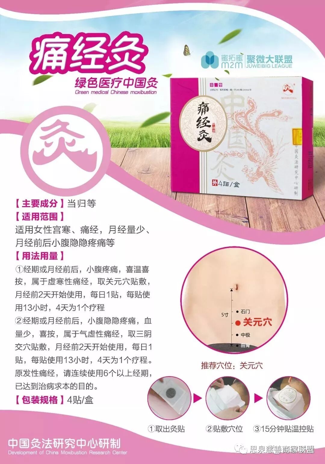 【用法用量】经期或月经前后,取关元穴贴敷,关元穴位于肚脐下三寸处,配合艾针灸贴三阴交,月经前2天开始使用,以及经期结束后第1-3天使用,经期中间不建议使用,每日1贴,每贴使用13小时,4天为1个疗程。原发性痛经,请连续使用6个月以上经期,以达到治病求本。