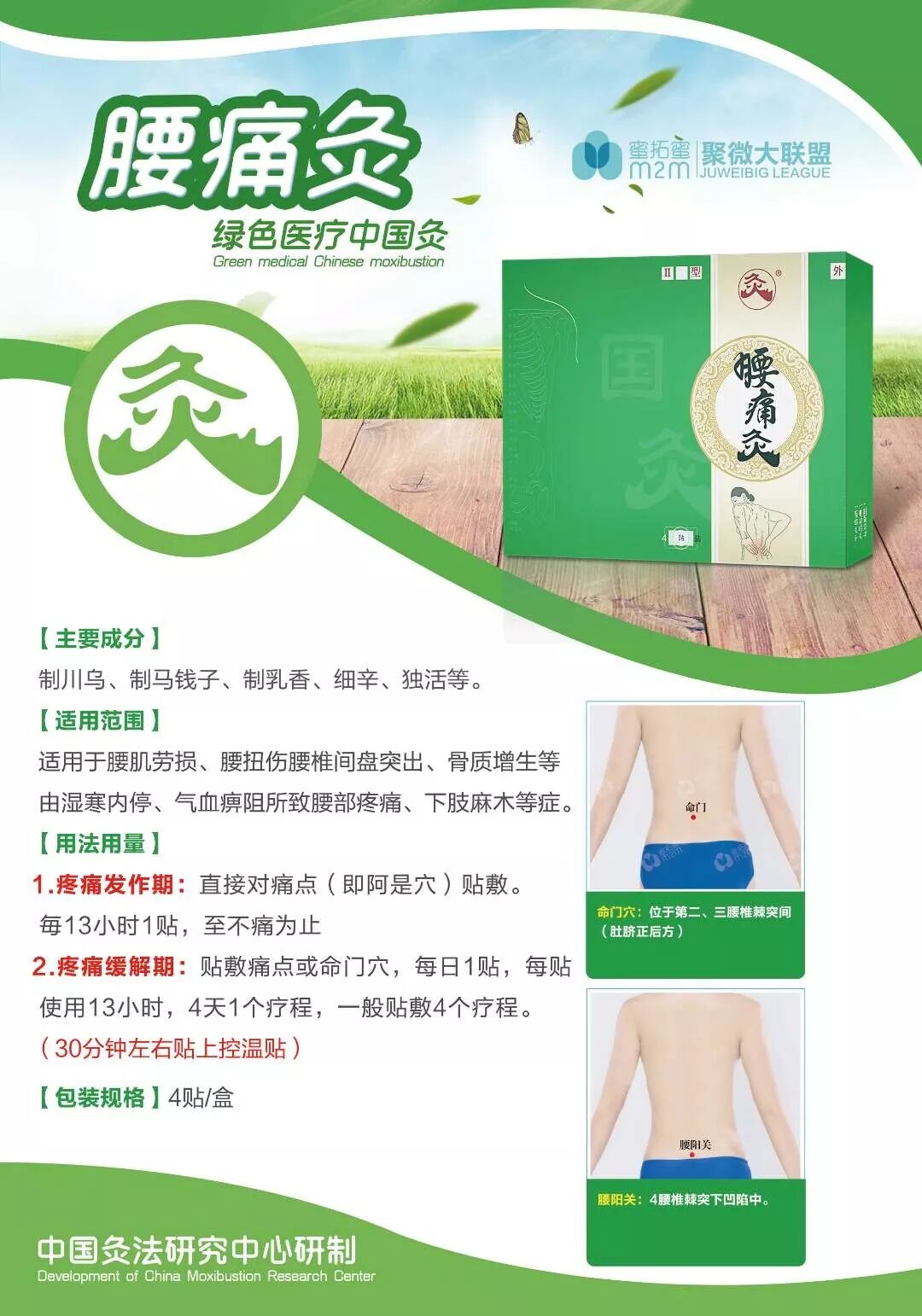 【 用法用量】1. 疼痛发作期:直接对痛点(阿是穴)贴敷。每13小时1贴,至不痛为止。2.疼痛缓解期:贴敷痛点或命门穴,每日1贴,每贴使用13小时,4天1个疗程,一般贴敷4个疗程(30分钟左右贴上控温贴)