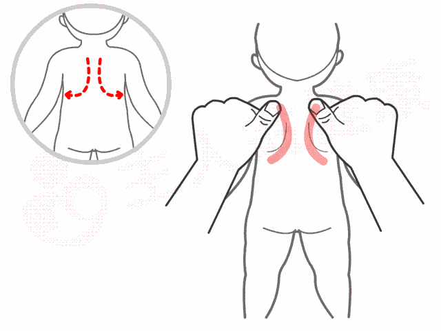 肺俞对肺经及呼吸道方面的疾病有非常重要的功效。宝宝只要肺部有问题,都可以按摩这个穴位。按摩时用食指和中指的指端在穴上按揉约2-3分钟。