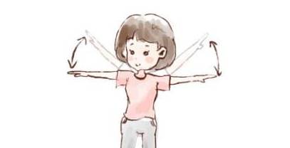 双手从侧平举(9点15分)举到10点10分处,反复练,以感到颈部肌肉酸胀为宜。