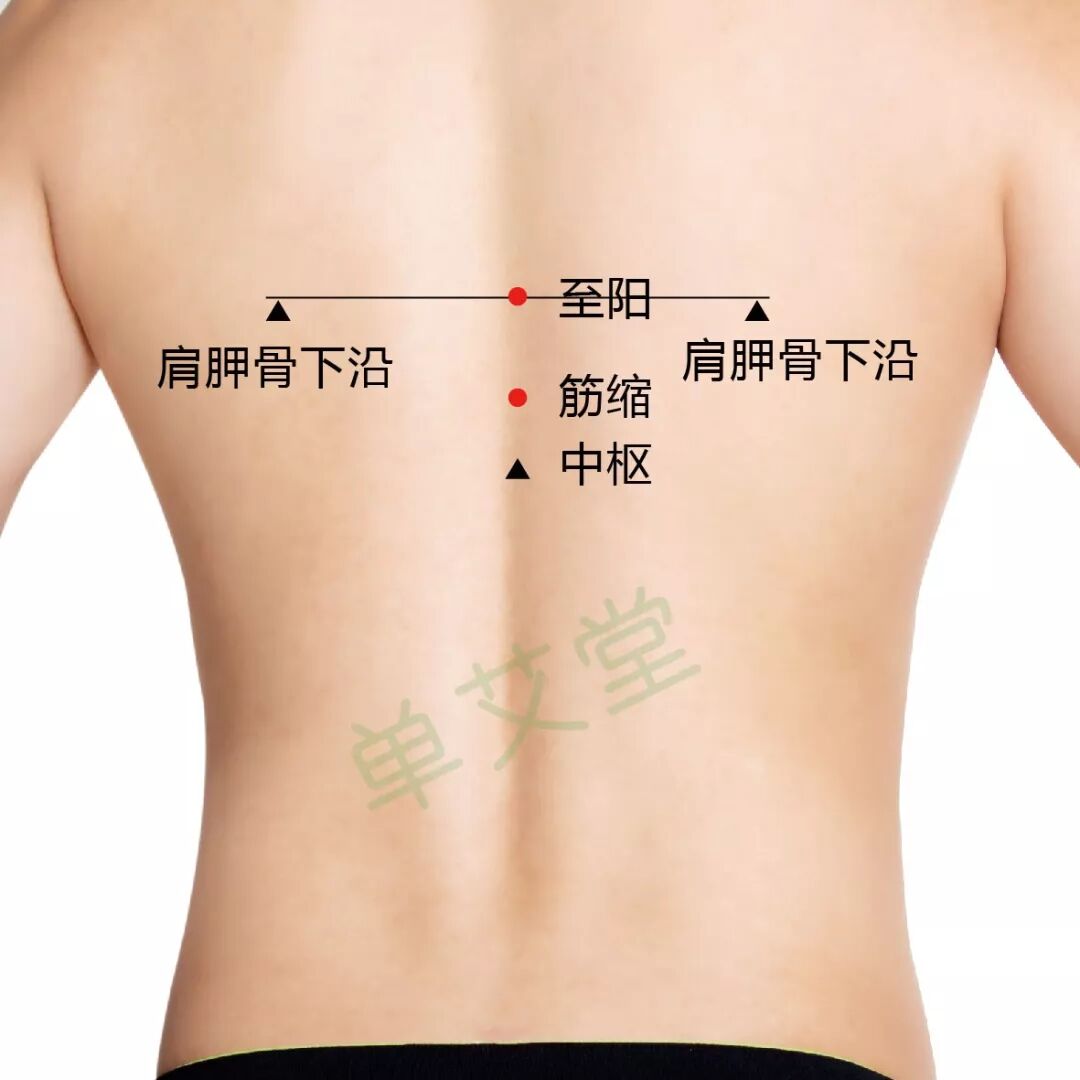 至阳穴位于背部中央,肩胛骨连线的中点,刺激至阳穴有振奋阳气,疏通经络的功效。