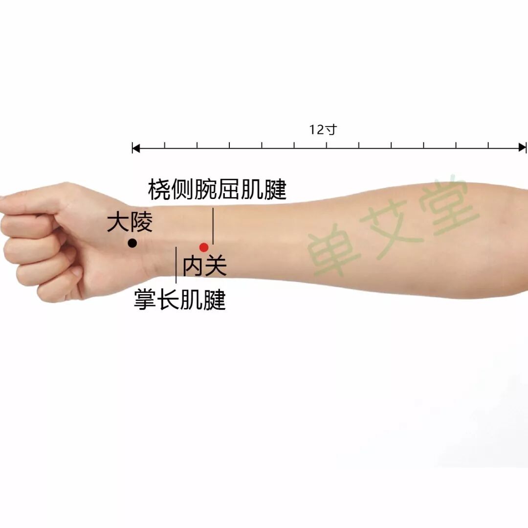 手法:点按。将拇指在内关穴处点按(有酸麻胀痛感觉为选准穴位),每侧100-200下。