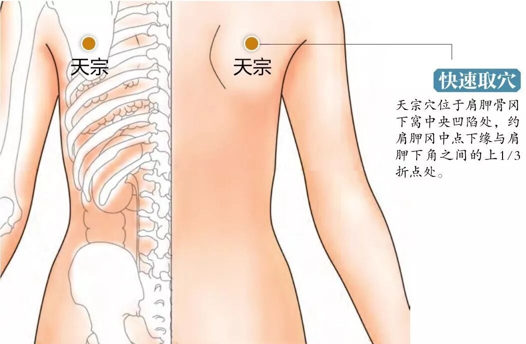 主治肩胛疼痛、手臂不举、上肢麻木、肩关节周围炎等,作用可以辐射至整个肩颈部位。