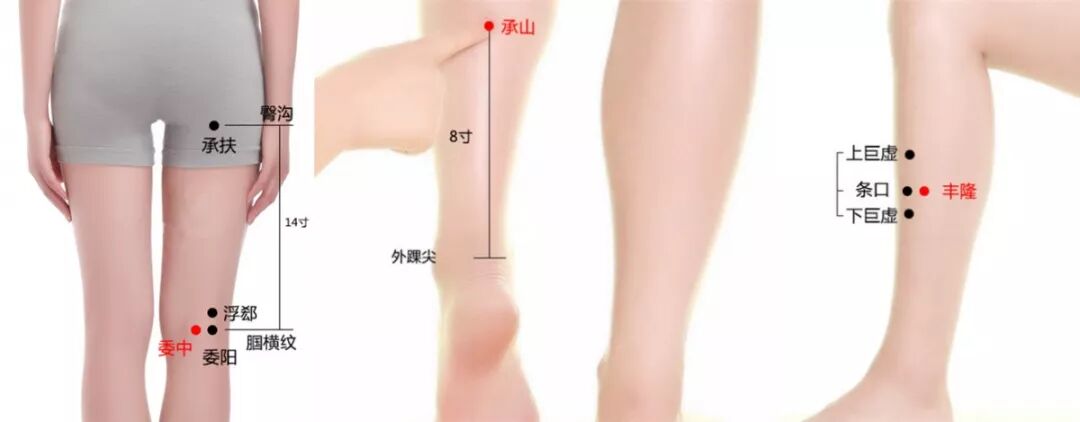 承山穴:祛除湿气的重要穴位,可有效祛湿,通过经络及淋巴排出体内浊水。