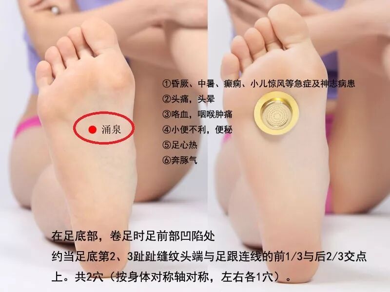 用手按压涌泉穴,使脚心发热,建议早晚搓脚心1次,左右脚各按100次。