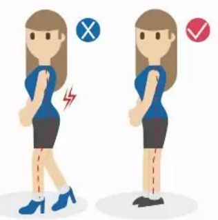 小贴士:平时尽量穿平底鞋 上班族可以备双平底鞋 办公室。如果特殊场合必须穿高跟鞋 走路时尽量将重心放 脚后跟而 前脚掌。