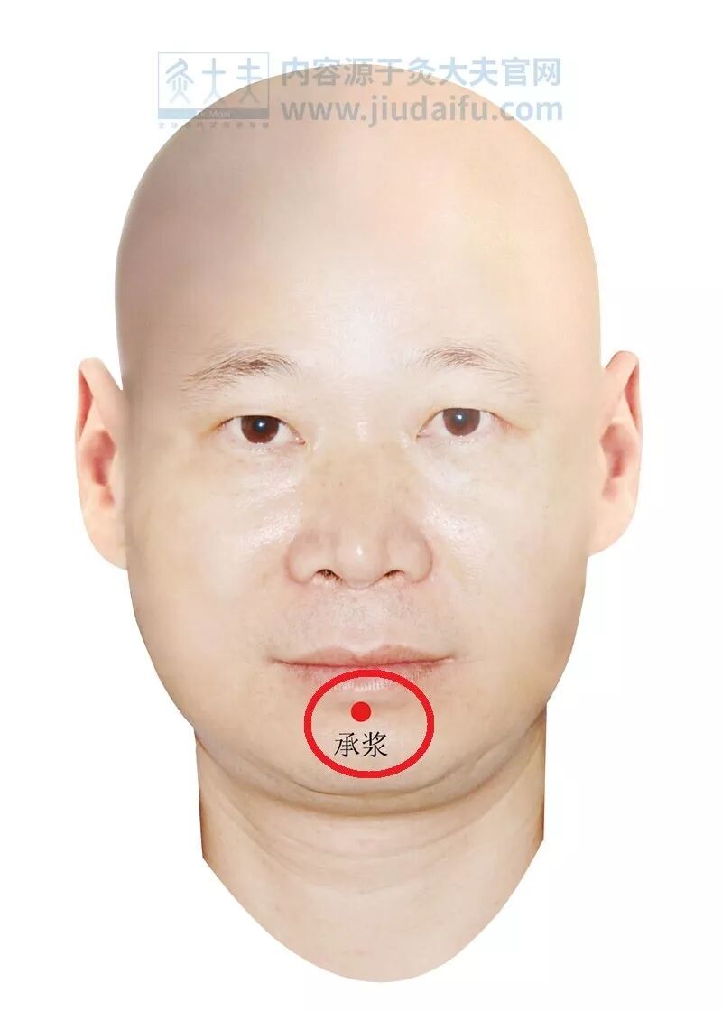 承浆穴位于面部颏唇沟正中凹陷处经常按摩有利于促进面部血液循环。