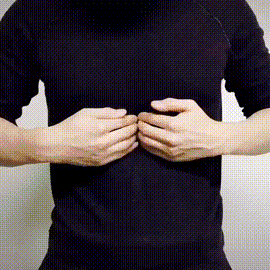 双手四指并拢贴附于肋缘下剑突端后沿两侧肋弓抚至胁肋部反复按摩次左右。此法有疏肝利胆、助消化功效。