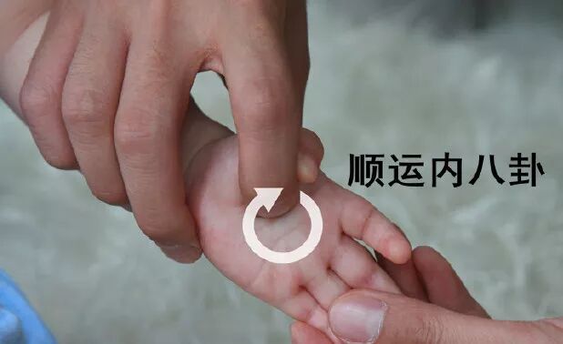 手法:用拇指的指端置于内八卦处,做顺时针方向的掐运