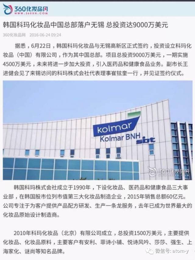 韩国科玛(KOLMAR KOREA)成立于1990年,是韩国最早从事化妆品行业的公司,也是被选定为CGMP(世界优秀化妆品制造及品质管理标准)制定公司之一。拥有强大研发自主研发能力的韩国科玛,目前排名韩国功能性化妆品第一,香奈儿、资生堂、菲诗小铺、悦诗风吟、欧莱雅、强生….等品牌很多产品都出自科玛公司。科玛公司现在以每年生产超过大约15000种的产品,供应给来自世界各地的250个客户,其中包括纽约,日本,泰国,北京,苏州。于2002年,他们向制药业发展,至今已持有超过500个证书处方。