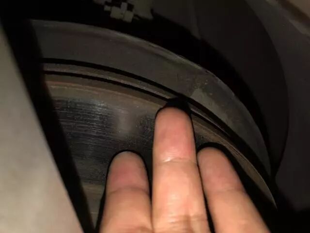刹车盘也是我们检查的重点,如果你发现有1毫米以上的凹痕了,说明公里数至少是7、8万公里了,就像这样