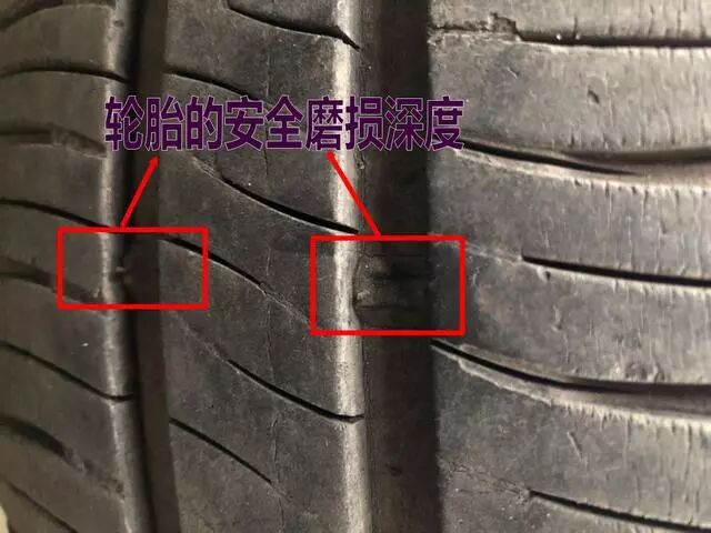 轮胎的纹路里面都有这样一个安全警示线,磨损到这个位置应当要立即更换轮胎了,新轮胎的胎纹深度大概是8~10mm左右,根据这个高度,可以大概估算一下轮胎的使用里程数;