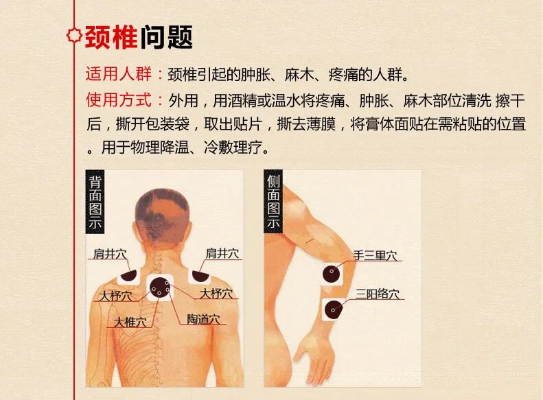 主治:主要用于肩颈疾患。如肩背酸痛、肩胛神经痛、颈项强急、落枕、肘臂冷痛等。