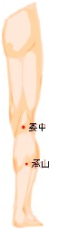 主治:1、小腿肚抽筋(腓肠肌痉挛)、脚部劳累、膝盖劳累、腰背痛、腰腿痛。