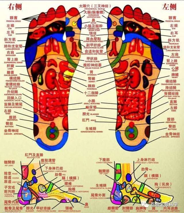 人体器官与脏腑,足部均有反射处