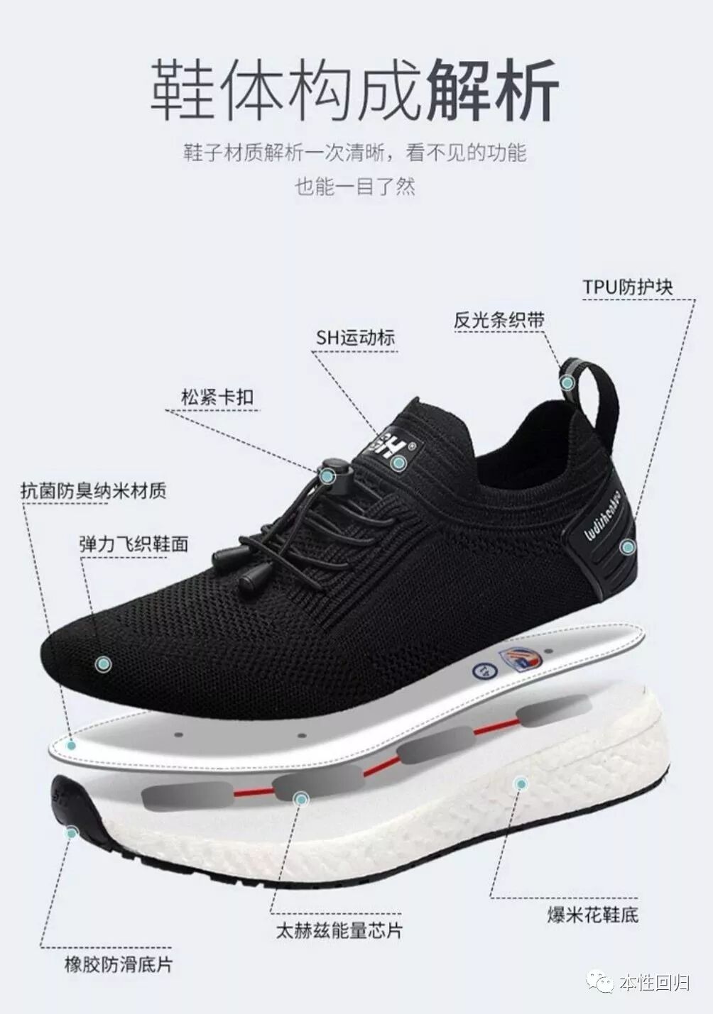 这是一双植入高科技的鞋子所有布料都不是传统意义上的布料,而是用无机材料托玛琳能量石拉丝织成的含负离子达900以上的远红外纳米布,所以具有杀菌消炎发热的作用!对脚气、脚臭、手脚冰凉、腰腿寒凉、腰腿疼痛,腰腿僵硬都有很好的调理作用。