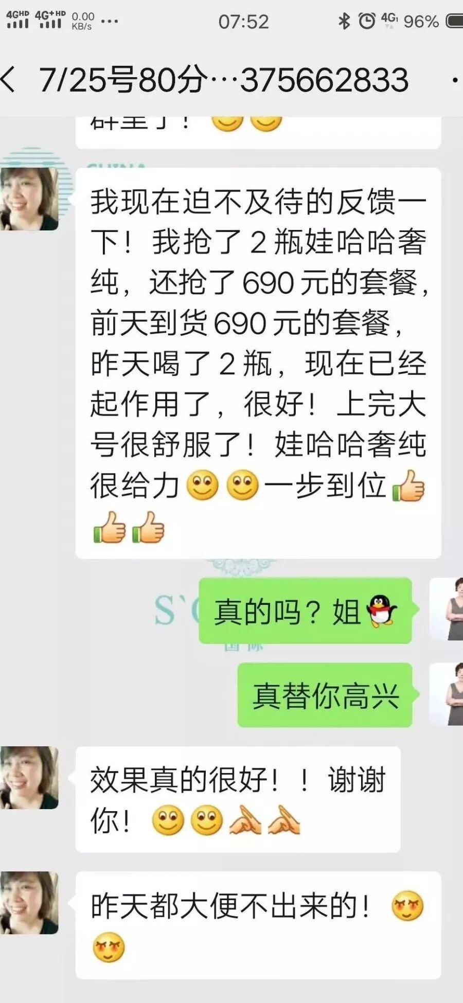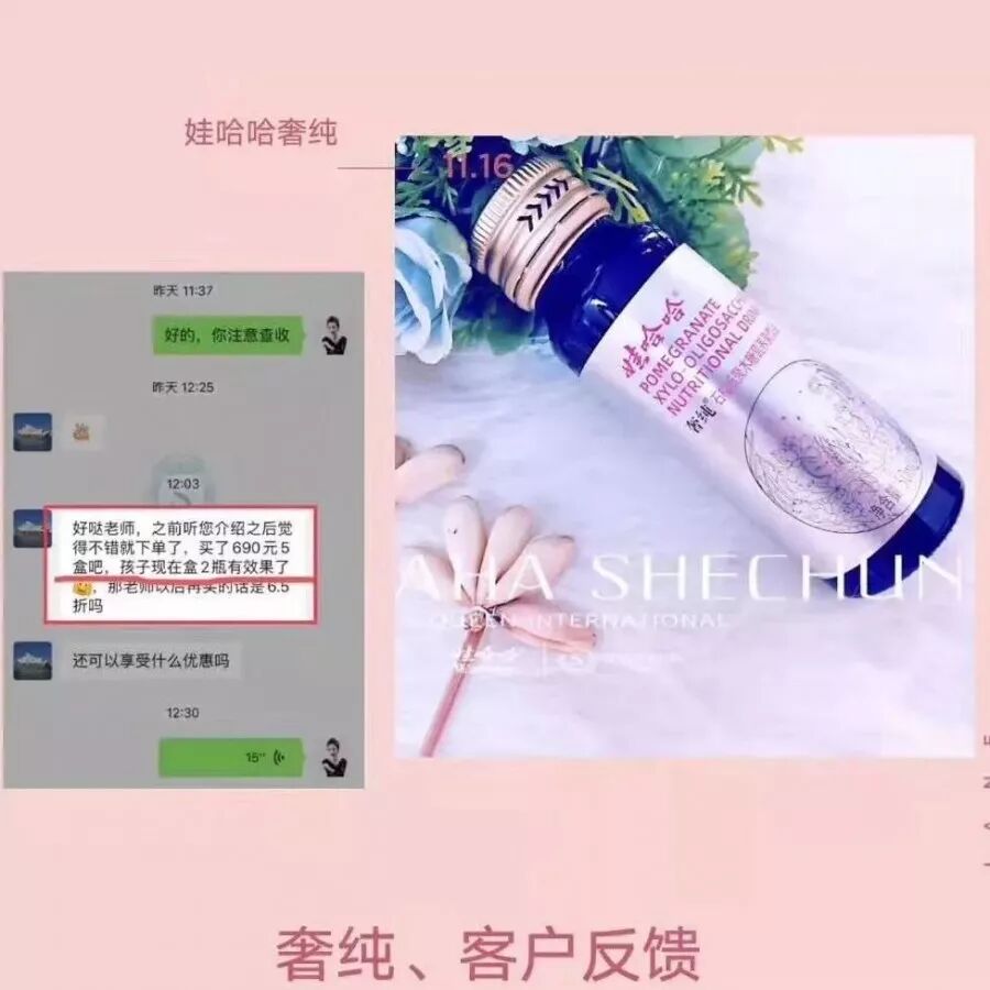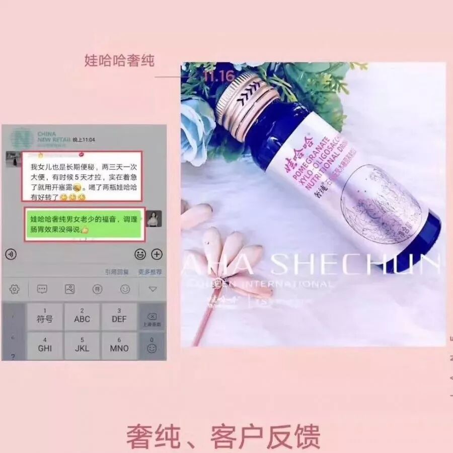 客户的孩子严重便秘,使用其他产品都没有效果,俩瓶娃哈哈就有效果,奢纯肠道健康的首选