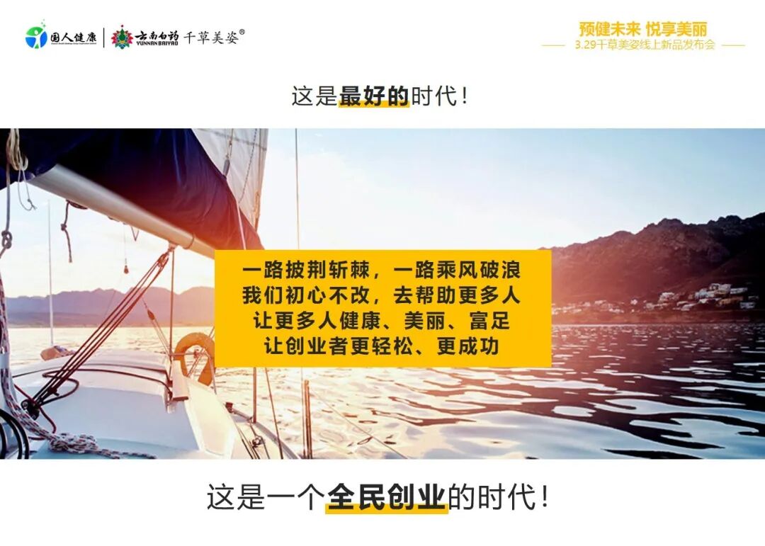 成功从来不是一蹴而就,对于创业者来讲,跟对一群正确的人,选对一个好的平台,做一个有前景的项目是最重要的。我们没办法预测明天,但能把握今天,乱世出英雄,机遇已经到来,国货当自强,让我们一起攀登高峰。